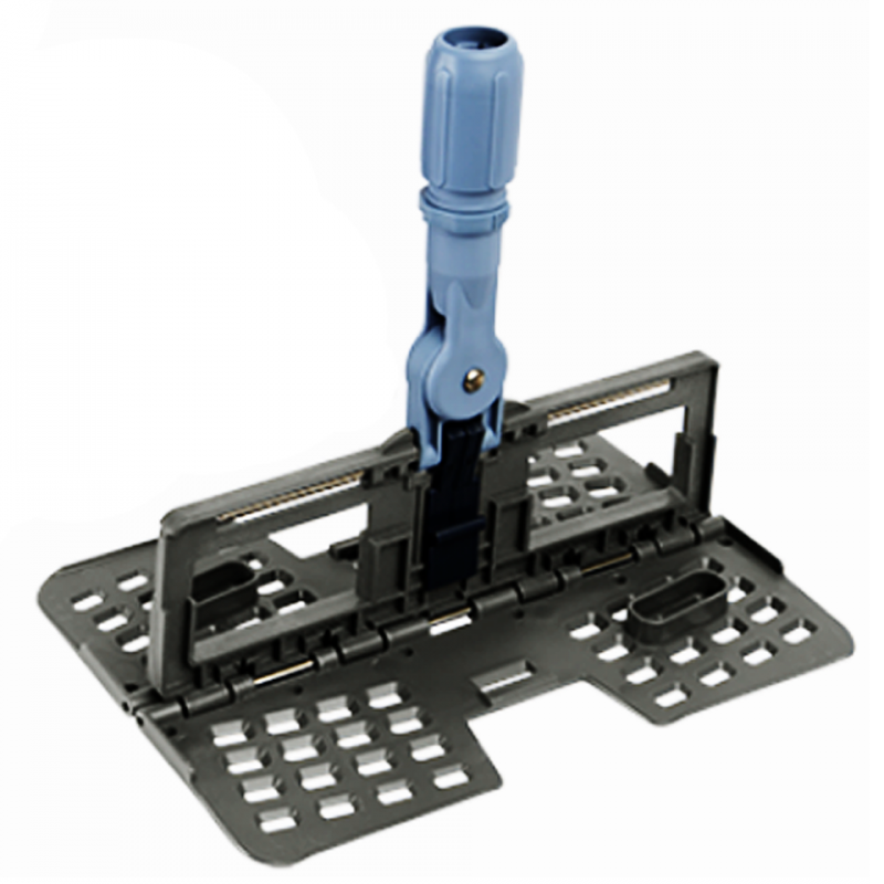 The Twixter/Twix frame features dual-sided mopping capability, allowing for an easy and quick flip to the other side. Its compatibility with the DesTub enables a seamless two-step cleaning process, efficiently tackling both wet and dry cleaning in one operation. For high-traffic areas, such as canteens, the frame's use with the Flat press ensures thorough dirt removal. The design includes a secure two-click mechanism for easy mop attachment, an ergonomic movement sequence for comfortable use, and a touchless mop release system, enhancing the cleaning experience while reducing physical strain.